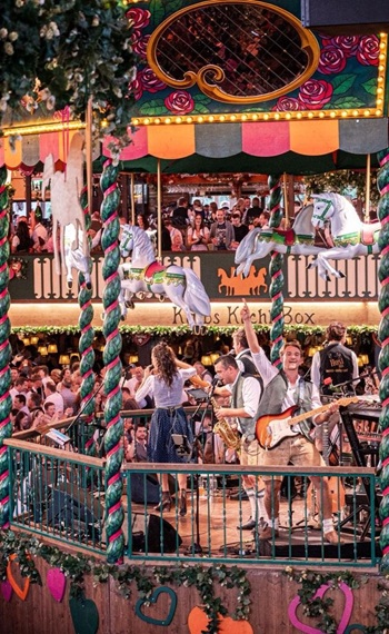 Ab dem Vormittag sorgt Host mi mit traditioneller Blasmusik und einer Mischung aus Volksmusik, legendären Wiesn-Hits und schwungvollen Stimmungsklassikern. Host mi steht für das Beste, was die Wiesn musikalisch zu bieten hat.