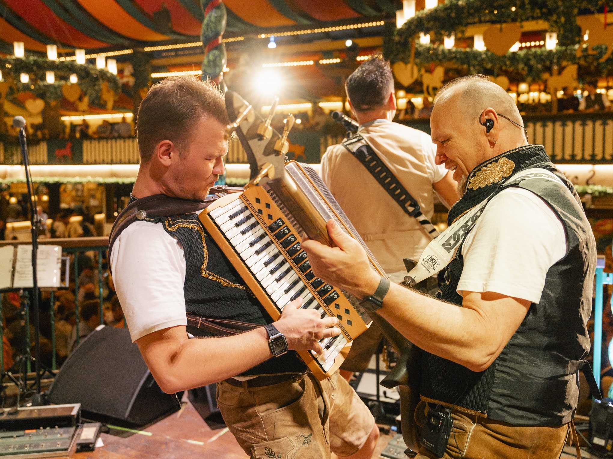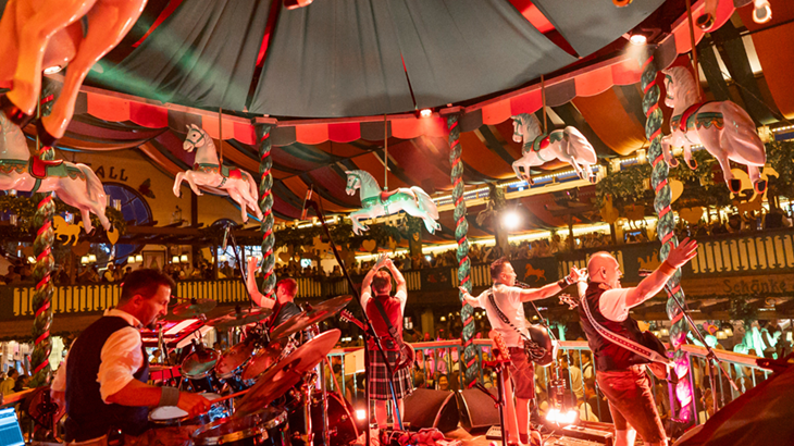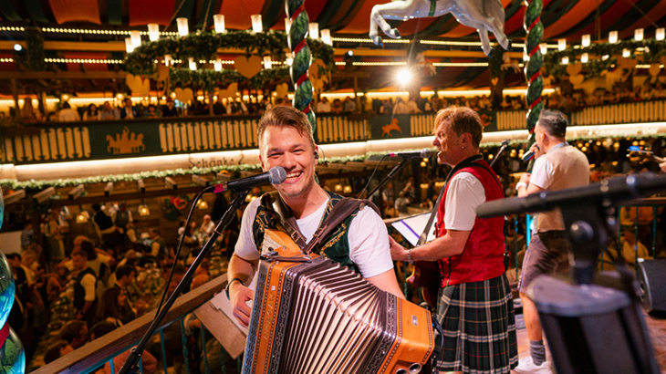 Ab dem Vormittag sorgt Host mi mit traditioneller Blasmusik und einer Mischung aus Volksmusik, legendären Wiesn-Hits und schwungvollen Stimmungsklassikern. Host mi steht für das Beste, was die Wiesn musikalisch zu bieten hat.
